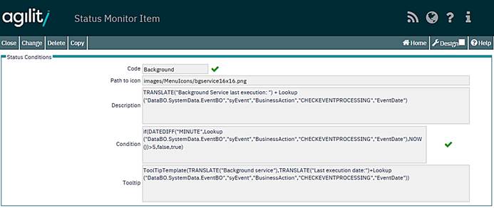 The system condition is presented on the main Agility home page screen below the menu.
