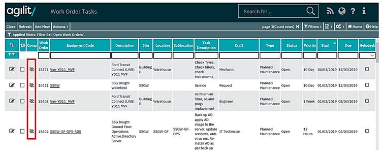 The form is accessed form the work order task list scan by clicking the ‘chequered flag icon on the same row as the required task.