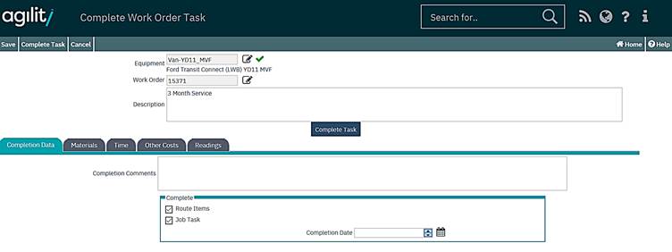 In this tab the completion comments can be added, the date and time which this task was completed.