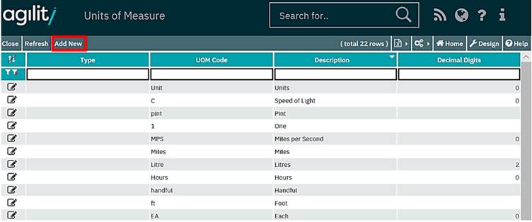 Accessed from Standing Data >> Inventory >> Units of Measure