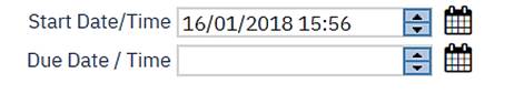 Similar functionality is provided if the field is defined as a date field. However, the value would be increased or decreased by a value of 1 day. If the date field is blank and the ‘up arrow’ is clicked, the date will be set to ‘today’.