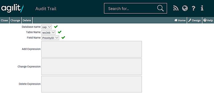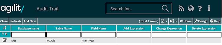 Accessed from System Configuration >> Audit Trail >> Audit Trail Setup