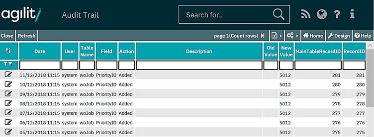 Functionality exists within Agility to log changes to any field within the system. This can be defined by a user with administrative access to the system.