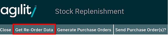 To run the re-order routine click the ‘’Get Re-Order Data’ option at the top of the form;