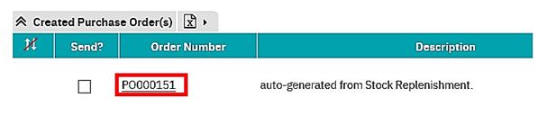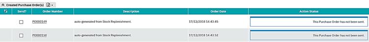 This element, which is not required to be performed from stock replenishment, deals with how to send purchase orders, ‘en masse’, from the stock replenishment form.