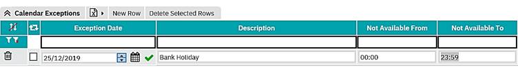 A description field is also available which can be used to store details about the exception, for example ‘Public Holiday’.