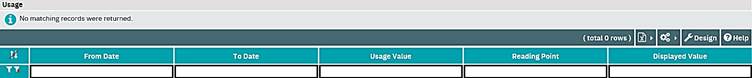 The usage grid shows usage by show the period between the pervious and current reading point and the reading value.