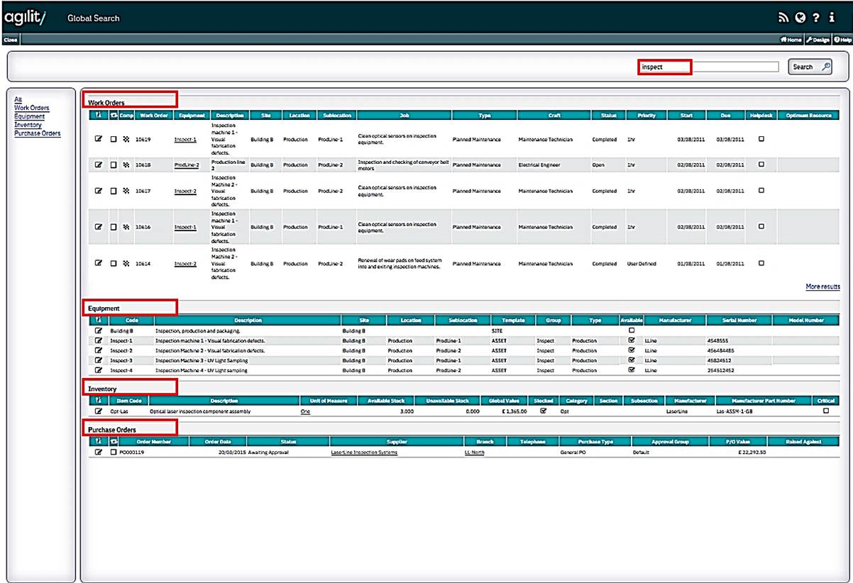 Each user has the ability to search Agility using the Global Search functionality on the main menu header and on the scan and detail headers.