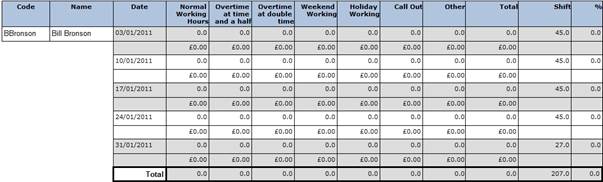 Similar to the labour utilisation report this shows the total time an employee has worked, but analysed by the pay rate, using weekly or monthly intervals.