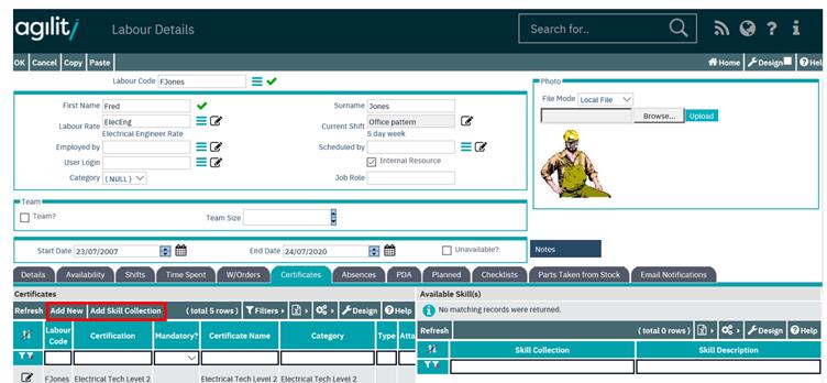 From the labour resource record either a new certificate(s) are added either individually or as a skill collection. When you add a skill collection all member certificates of that skill collection are added as individual labour certificates.