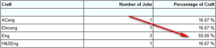 In the screen capture below which has the sort order set to craft. The results show that during the selected date range the largest majority of work orders were raised against the ‘eng’ craft code.