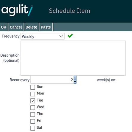 Select the cycle frequency from the drop down list. Once selected, the form will be updated to show the required fields for this cycle period.