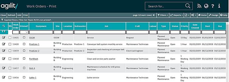 Each work order contains a flag that indicates if it has been printed. This flag is set to yes once the work order has been printed.