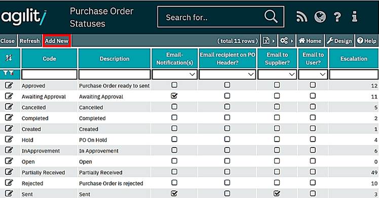 Accessed from Standing Data >> Inventory >> Purchase Order Statuses