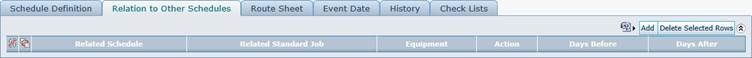 To suppress a scheduled work order, click on the Add button within the ‘Relationship to Other Schedules’ grid:
