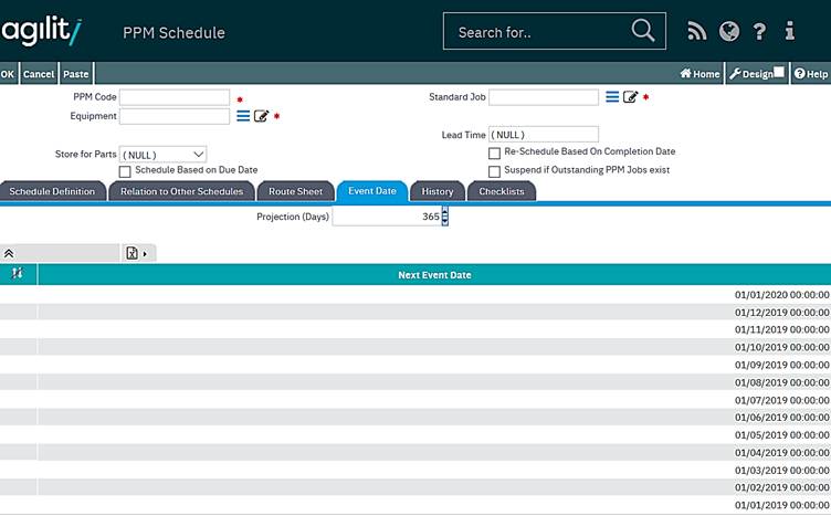 On entry of data into this field, the Event Dates grid will be populated with the dates that work orders will be generated from this schedule.