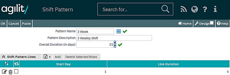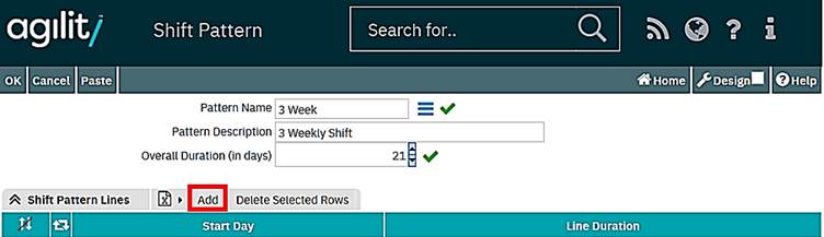 Click on Add within the Shift Pattern Lines grid to start entering the lines;