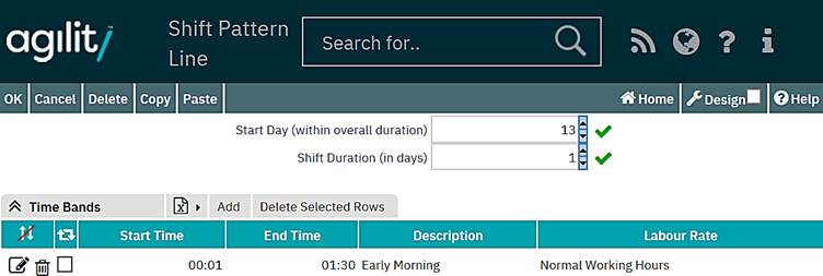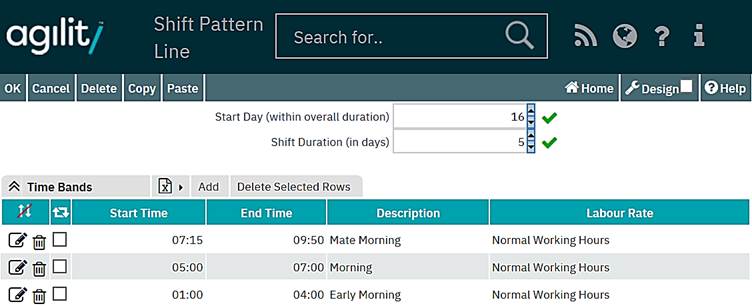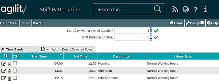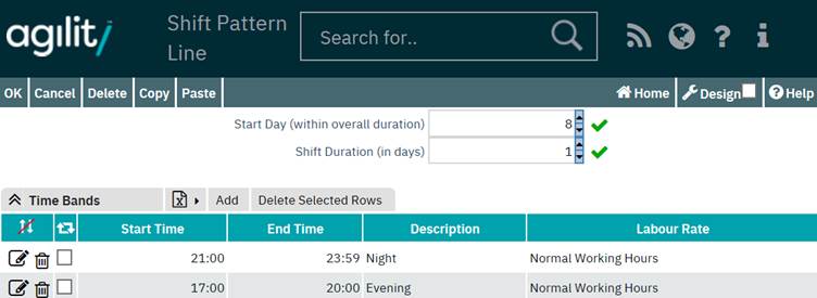 Click on Add within the Time Bands grid to enter the times of this shift lines;