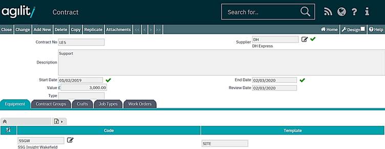To add new contract details please select ‘Add a New Contract’ from the menu or use the ‘Add’ option from the menu bar of the service contract detail form.