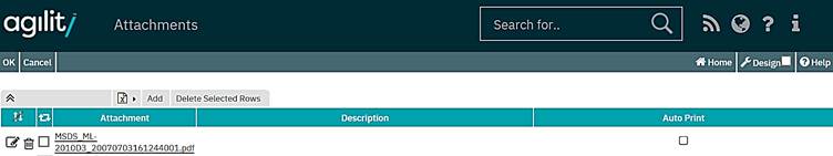 To add or maintain attached files click the ‘attachments’ option on the menu bar, this will open an attachments grid.