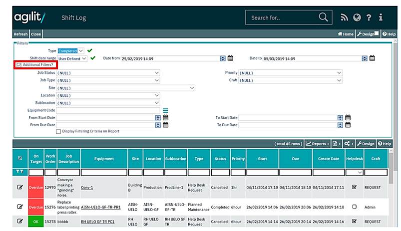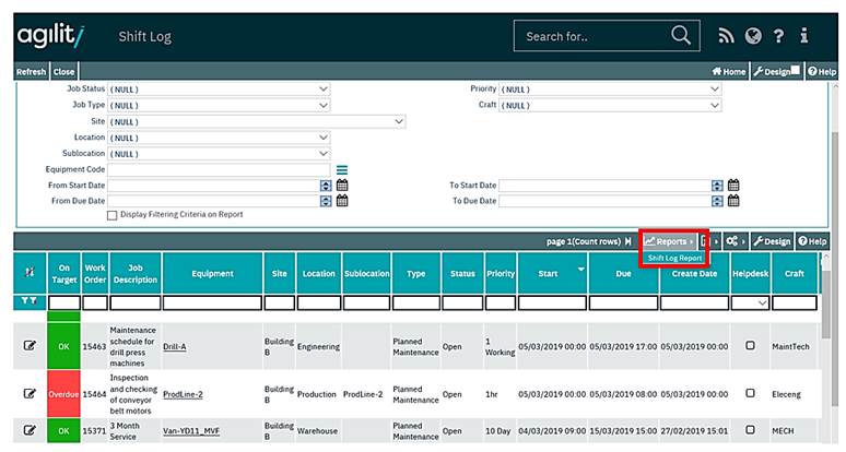 The shift log report is a summary list of work orders which have been created, completed or amended during the defined period of the report.