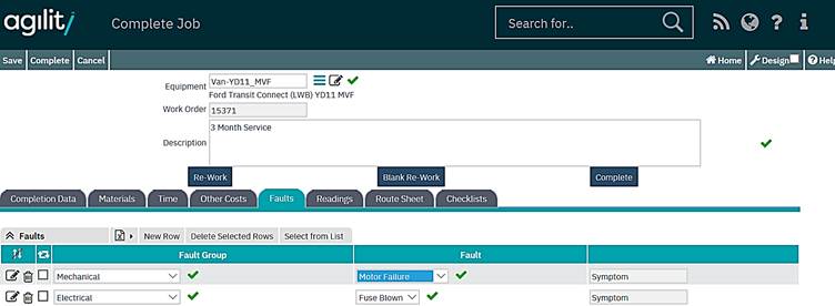 Any fault for this work order can be record within this tab. Any faults previously recorded against this work order will already be displayed here.