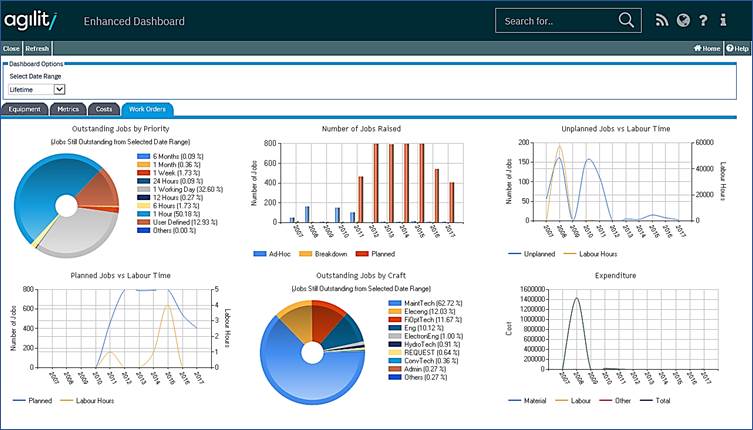 • The amount of Labour Time spent on both planned and reactive (unplanned) Work Orders.